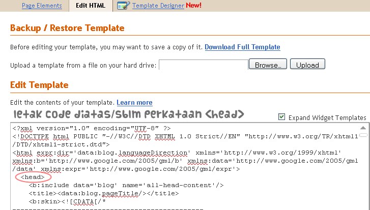 perkataan yang di merahkan tu adalah perkataan head tepek code diatas/sebelum